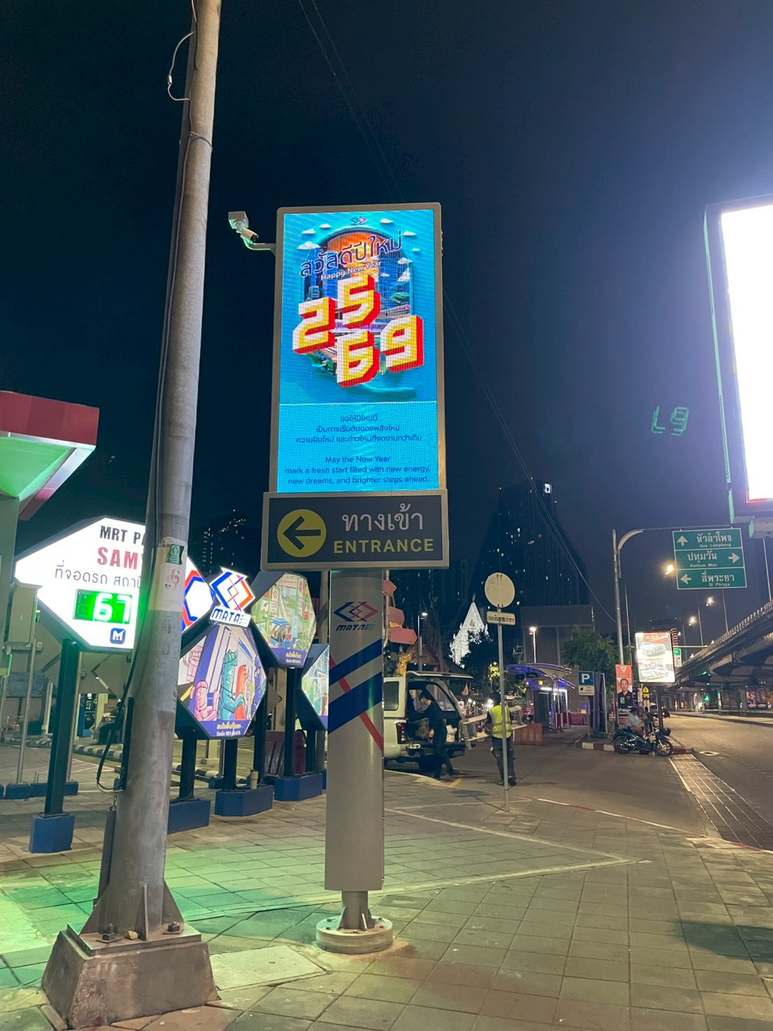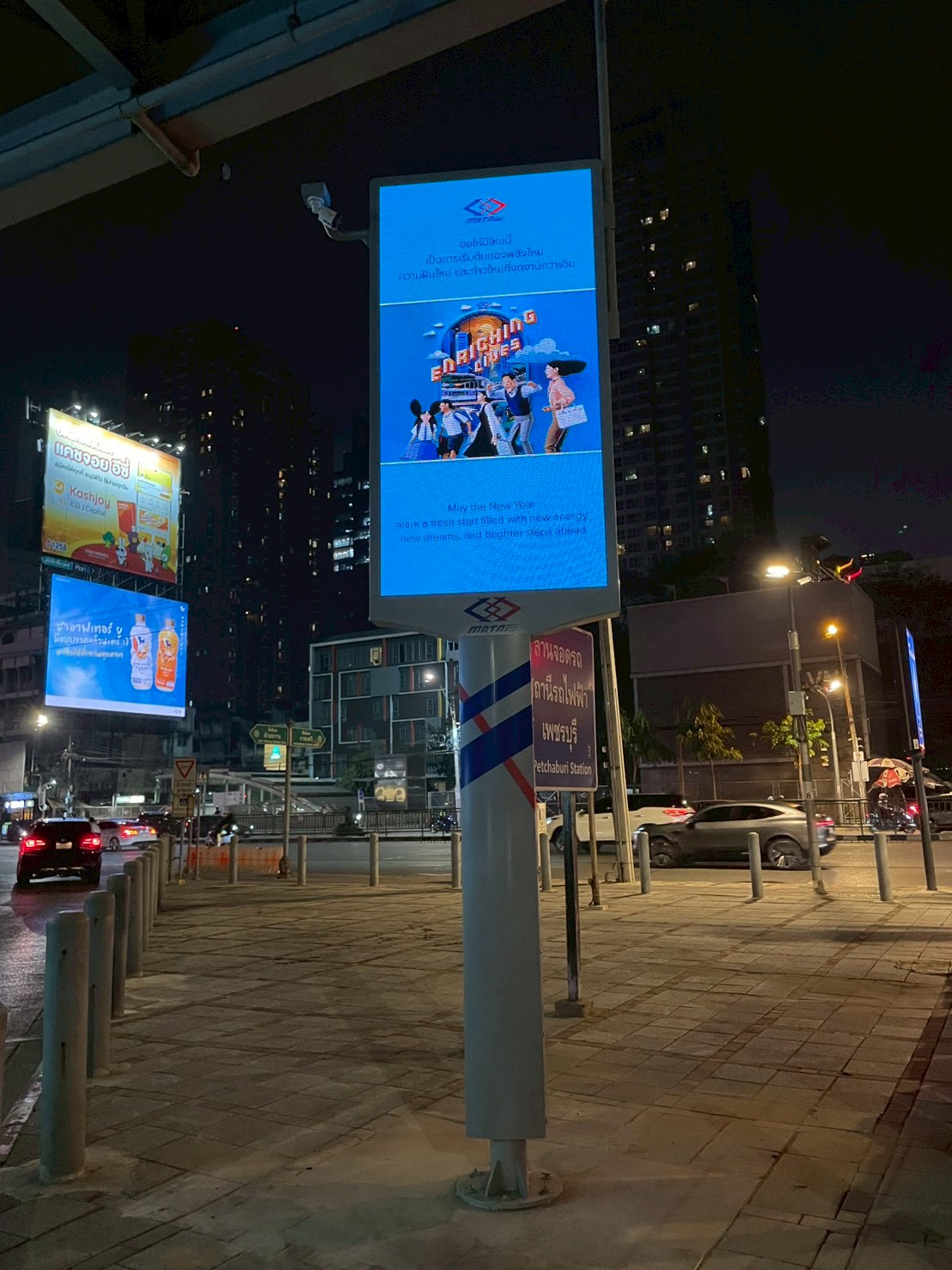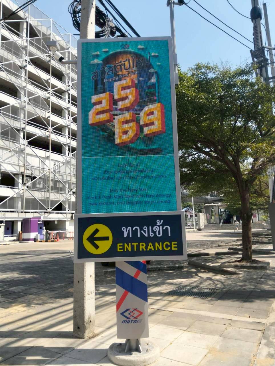 ดำเนินการติดตั้งจอประชาสัมพันธ์ชนิด LED สำหรับภายนอกอาคาร รฟม. โดยโครงการดังกล่าวครอบคลุมการติดตั้งในพื้นที่สถานีรถไฟฟ้าหลายสาย ได้แก่