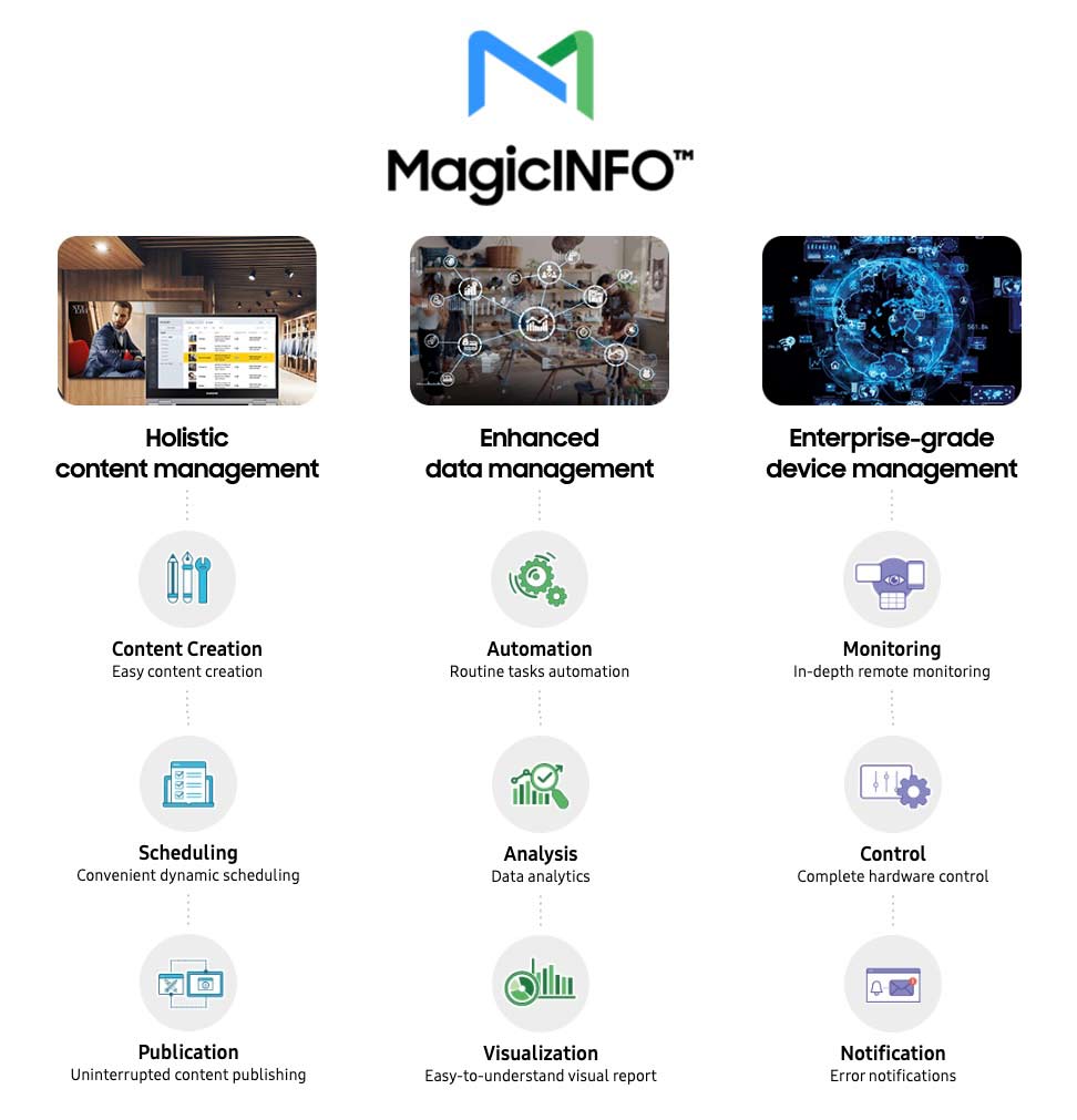 เพื่อปกป้องลูกค้าจากภัยคุกคามด้านความปลอดภัยใหม่ๆ Samsung จึงขอการรับรอง ISO* โดยเฉพาะ เนื่องจากเป็นมาตรฐานความปลอดภัยที่ได้รับการยอมรับและใช้กันอย่างแพร่หลายในปัจจุบันเป็นส่วนใหญ่ หลังจากผ่านกระบวนการตรวจสอบอย่างถี่ถ้วน Samsung ได้รับการรับรอง ISO27001 และ ISO27701 MagicINFO เป็นโซลูชั่นแรกในอุตสาหกรรมป้ายที่ได้รับการรับรองทั้งสอง MagicINFO มอบการรักษาความปลอดภัยระดับสูงสุดในอุตสาหกรรมป้ายดิจิตอลและเป็นที่ยอมรับทั่วโลก